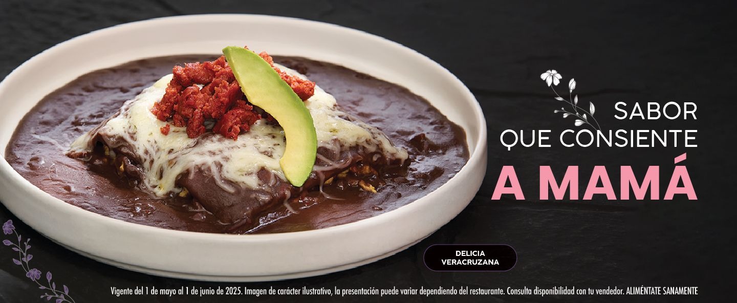 Delicia Veracruzana Este desayuno de tortillas de maíz rellenas de huevo revuelto a la mexicana, bañadas en salsa de frijol al chipotle, y gratinadas con queso y chorizo es ideal para mamás que aman la comida mexicana con un buen toque de sazón.