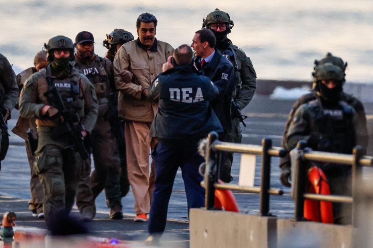 Con el uniforme caqui, el que usan los presos, y esposado de las manos, Nicolás Maduro, al igual que su esposa, salieron de la prisión en la que fueron recluidos mientras eran escoltados por varios agentes de la Administración de Control de Drogas (DEA, por sus siglas en inglés) hasta un helicóptero que los trasladó cerca de la Corte de Nueva York, en donde estarán frente a frente por primera vez ante un juez.