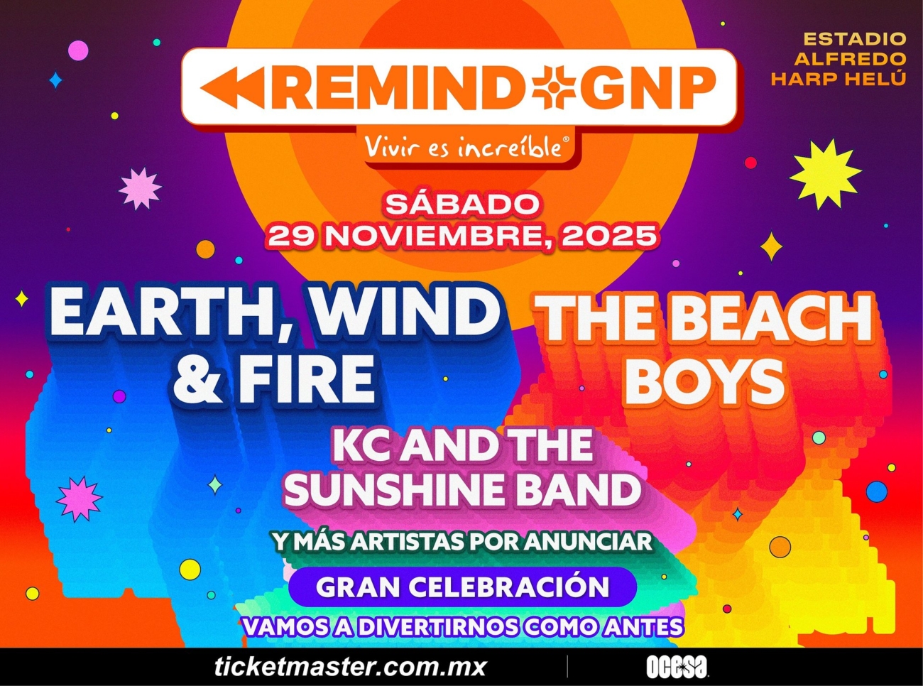 Luego de que Remind GNP desembarcara en Guadalajara en 2023, esta gran celebración está lista para soltar anclas nuevamente en Ciudad de México, donde se nos invita a compartir con familia y amigos, a festejar la vida y bailar con la misma energía hoy y siempre. Aquí, se erige el altar donde la música nos reúne y los recuerdos de la era dorada del disco, el soul, el rock y el pop, nos llenan de una energía indestructible, es momento de divertirnos como antes.